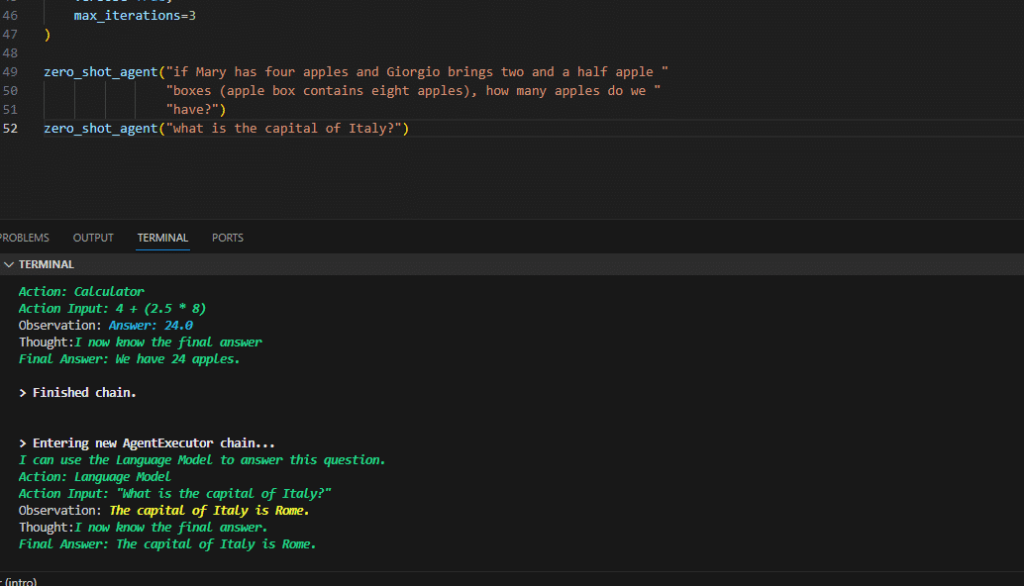 L’output proveniente da questo script è molto interessante perchè ci lascia vedere (grazie all’opzione verbose = True, nei parametri dell’agent) come un agent ragiona e come arriva al risultato finale: